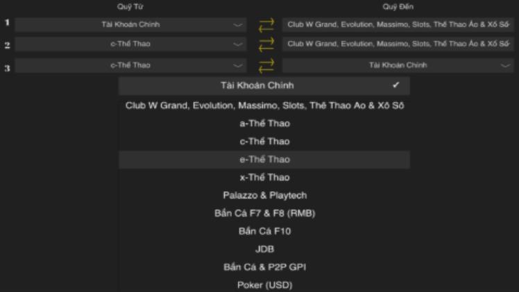 After logging in, select the item“Fund $” → “Fund Transfer” or “Transfer money” → “Transfer funds”This feature is located in an easy-to-see position, helping players operate quickly without wasting time searching.